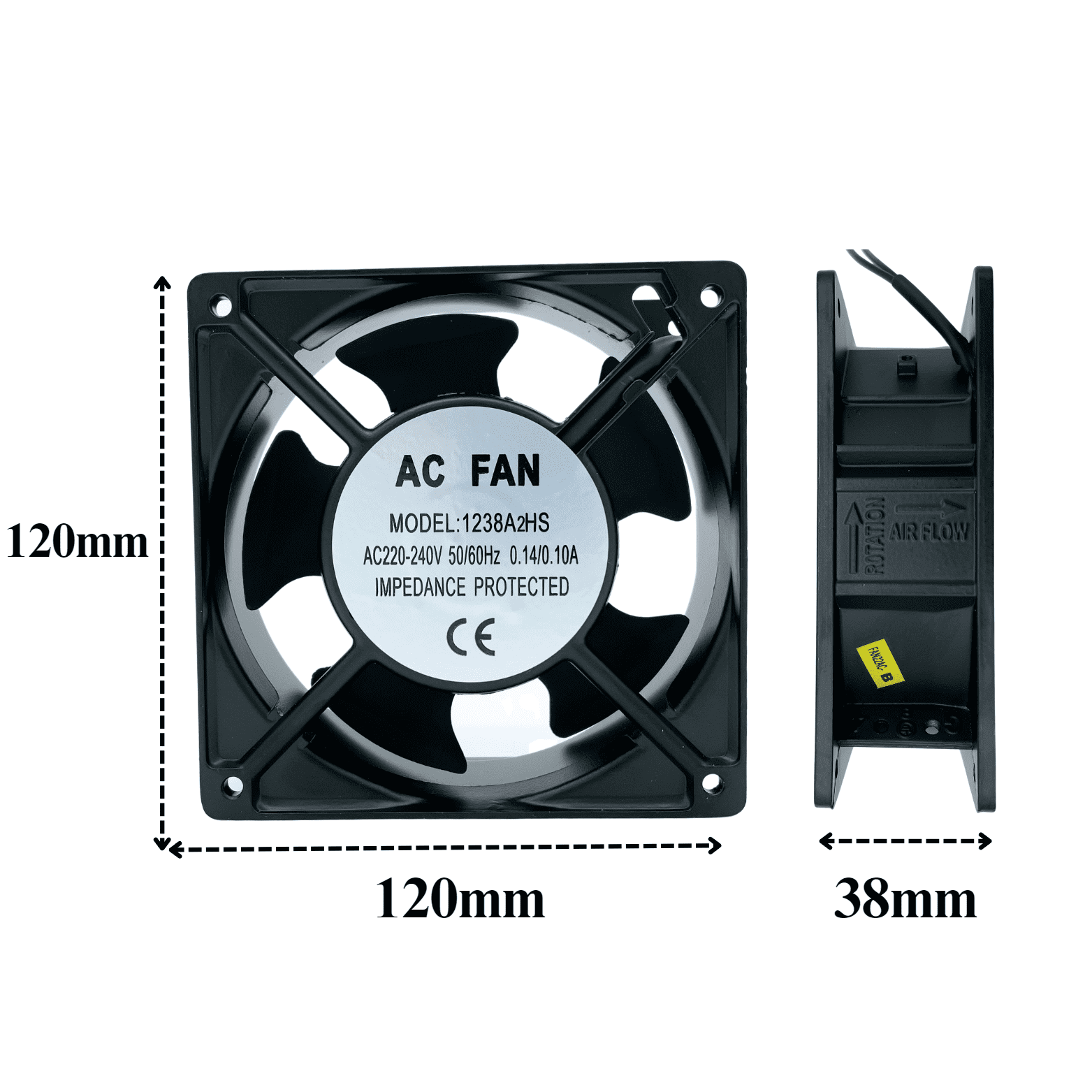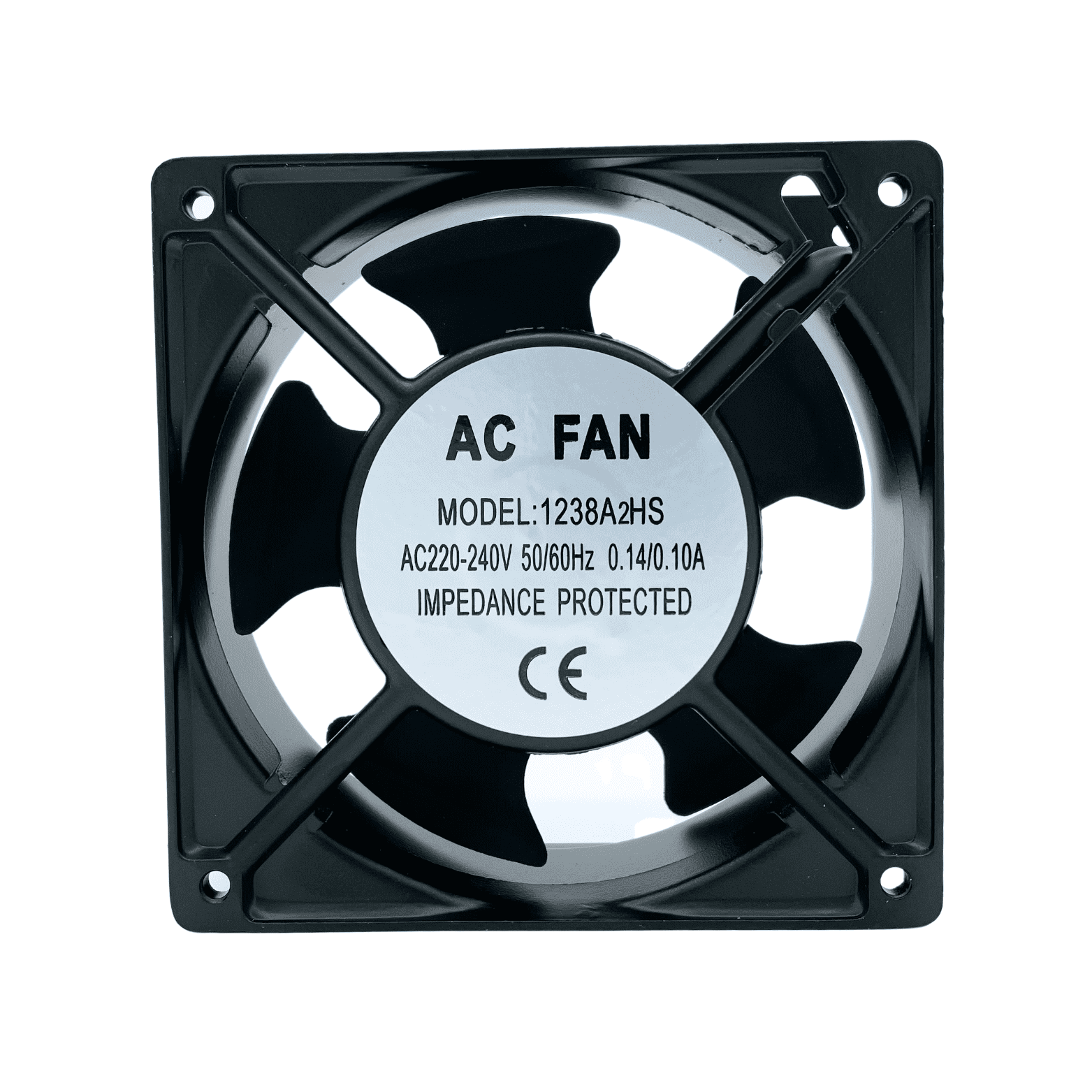 - A 220-240V AC mains axial fan for cooling, extraction, intake, ventilation, etc.