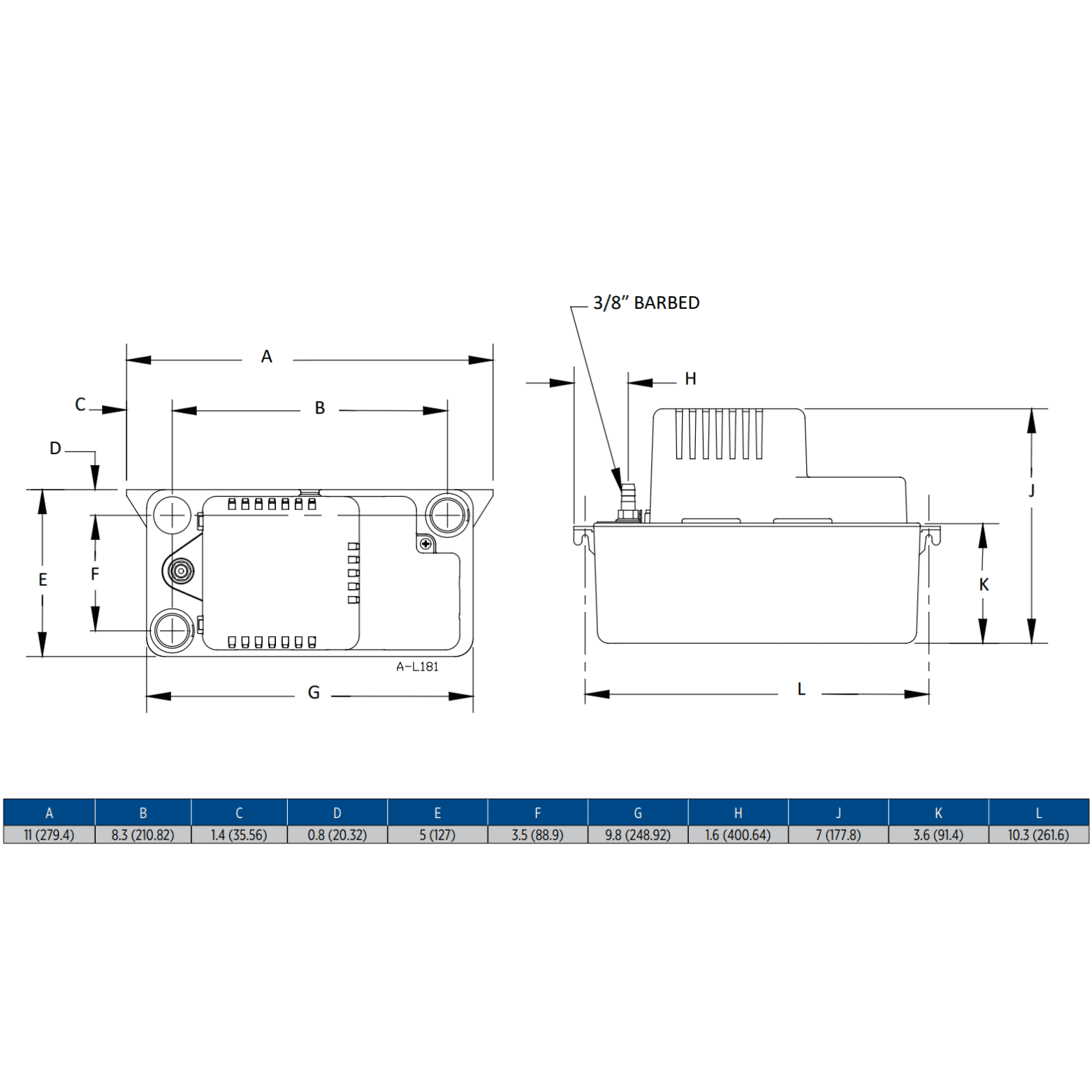 - Easy Installation: The built-in wall mount tabs and removable pump float locking tab make installation safe and convenient. The pump also comes with a 3/8" O.D. barbed discharge adapter with a built-in check valve for easy setup.