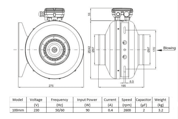 - Fan Noise Level: 59/60 dB(A) measured at 1.0m from inlet side