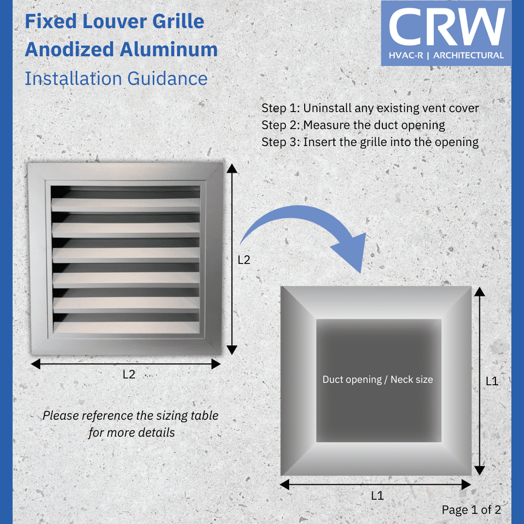 Note: Sizes listed are defined as "Neck Size". This is the opening size / ventilating area once the grille is installed. It is also the size of cutout required in the wall / ceiling / door to install the grille.