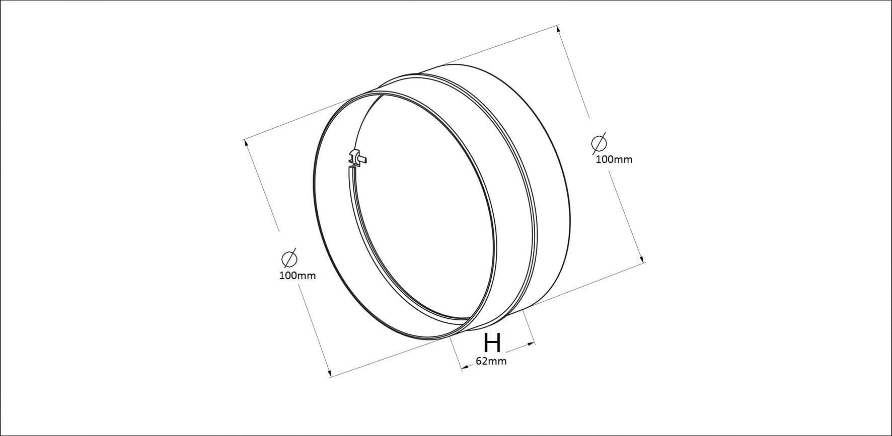 Connector fits into 100mm (4'') round pipe ducting to connect two lengths together in a straight line.