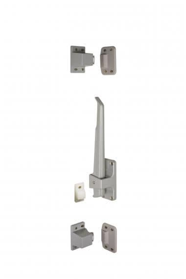 AUTOMATIC FASTENER for heavy overlapping doors: 1216 Door thickness 80 mm upwards, gasket included 2 external fastening points 1 internal handle with butt To be specified: left or right hand doors.