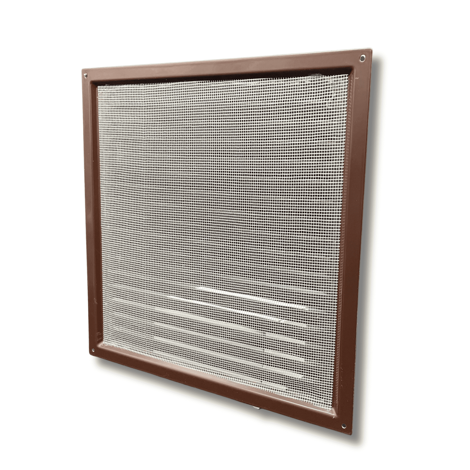 Flat Brown Metal Fixed Grille 300x300mm with FlyScreen - External/Internal Mounting for Ventilation & Air Conditioning