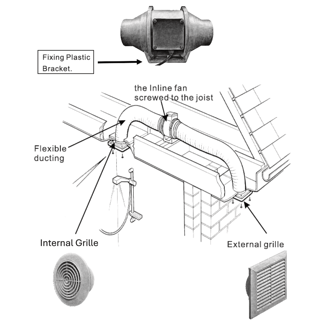 Complete Ventilation Kit: Includes everything you need for a full installation—ducting, external wall grille, and ceiling-mounted diffuser.