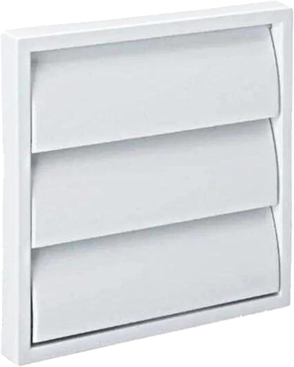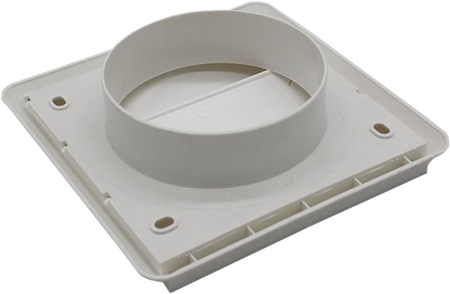 - Plastic Ducting Air Inlet / Air Outlet with Gravity Shutters. 150mm x 150mm external dimension with 4 inch / 100mm round male rear spigot on the back of the grille for indoor or outdoor use.