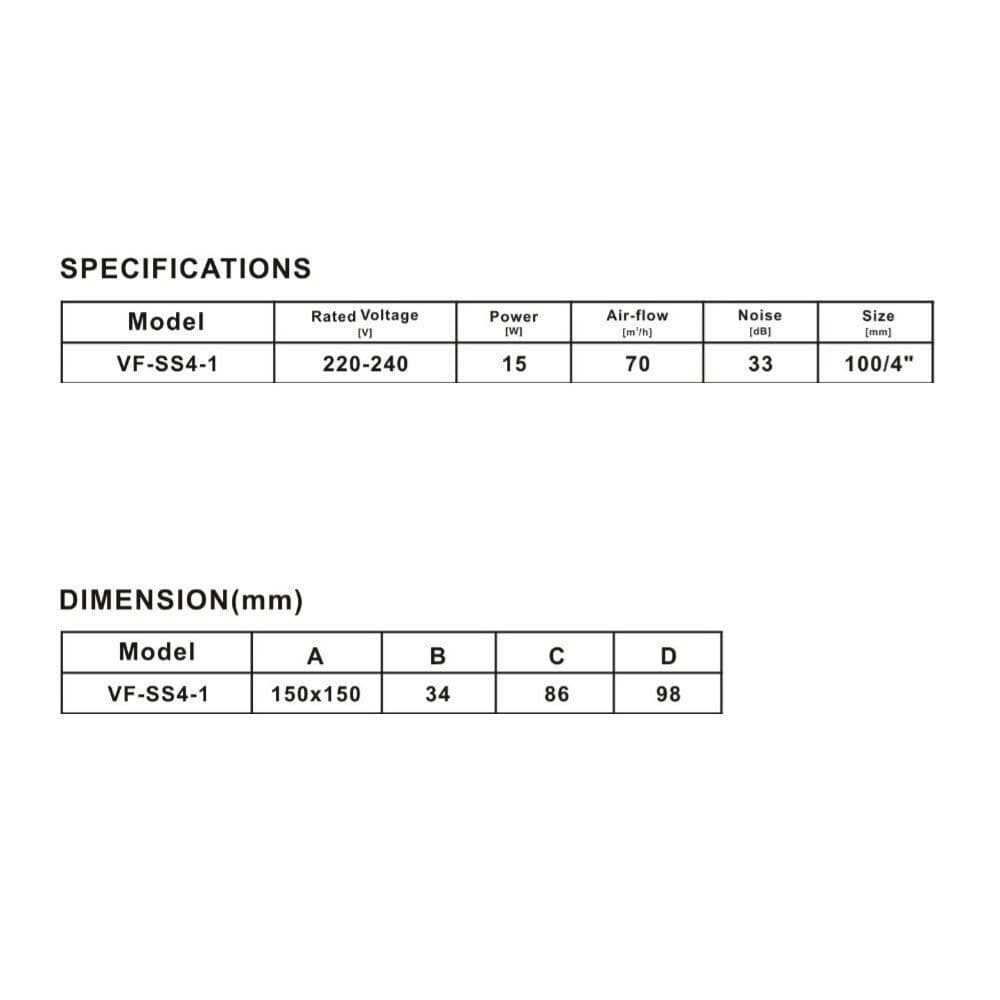 Product Code:BF-SS4-1 4 Bathroom Fan