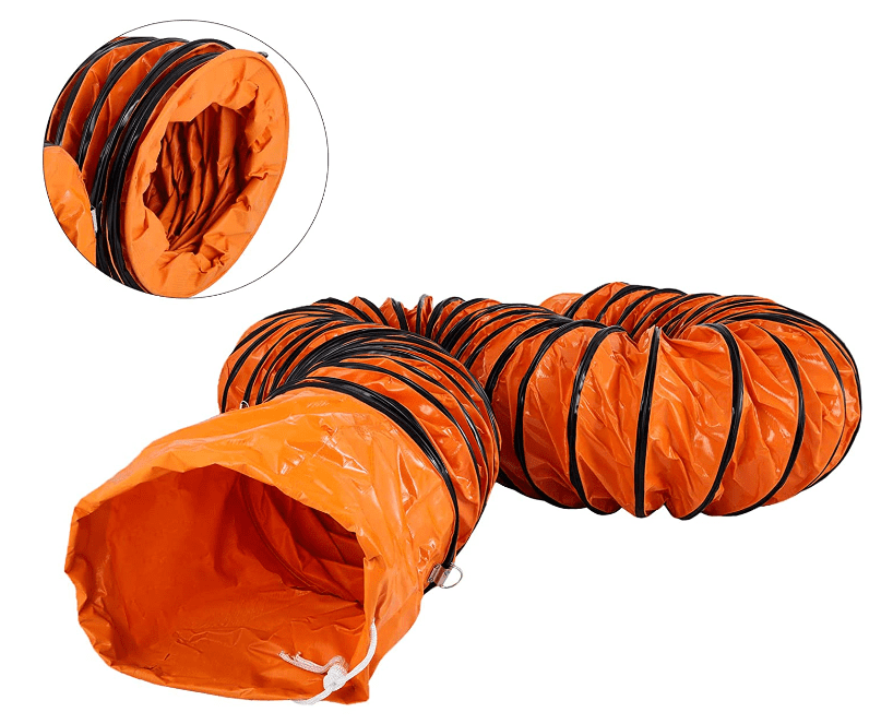 Industrial flexible PVC power fan hose ducting for air transfer constructed from strong flexible and reinforced pvc available in 8'' 10'' 12'' 16'' Inches X 10 meters length