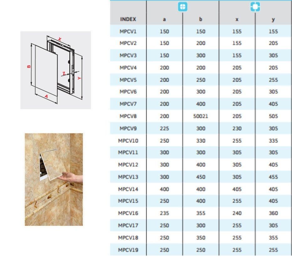 MPCV are manufactured in many sizes accordant with the tiles dimensions.